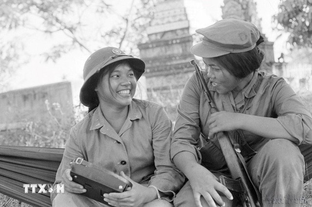 Hai nữ chiến sĩ Việt Nam và Campuchia sát cánh bên nhau