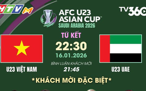 Thể thao 18:00 16/01/2026Trận tứ kết U23 Châu Á giữa U23 Việt Nam - U23 UAE sẽ diễn ra lúc 22g30 tối nay (16/1) trên sân Prince Abdullah Al Faisal Sports City và được truyền hình trực tiếp trên kênh HTV Thể thao và trên app HTVm.