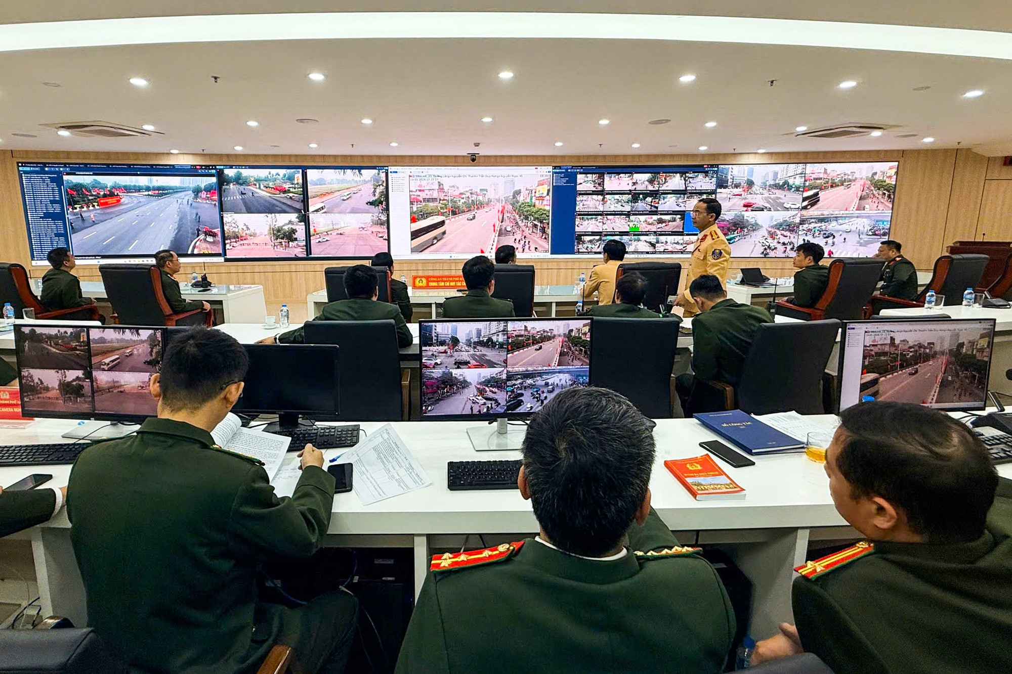 Trung tâm chỉ huy Công an thành phố Hà Nội trong ngày đầu diễn ra Đại hội.