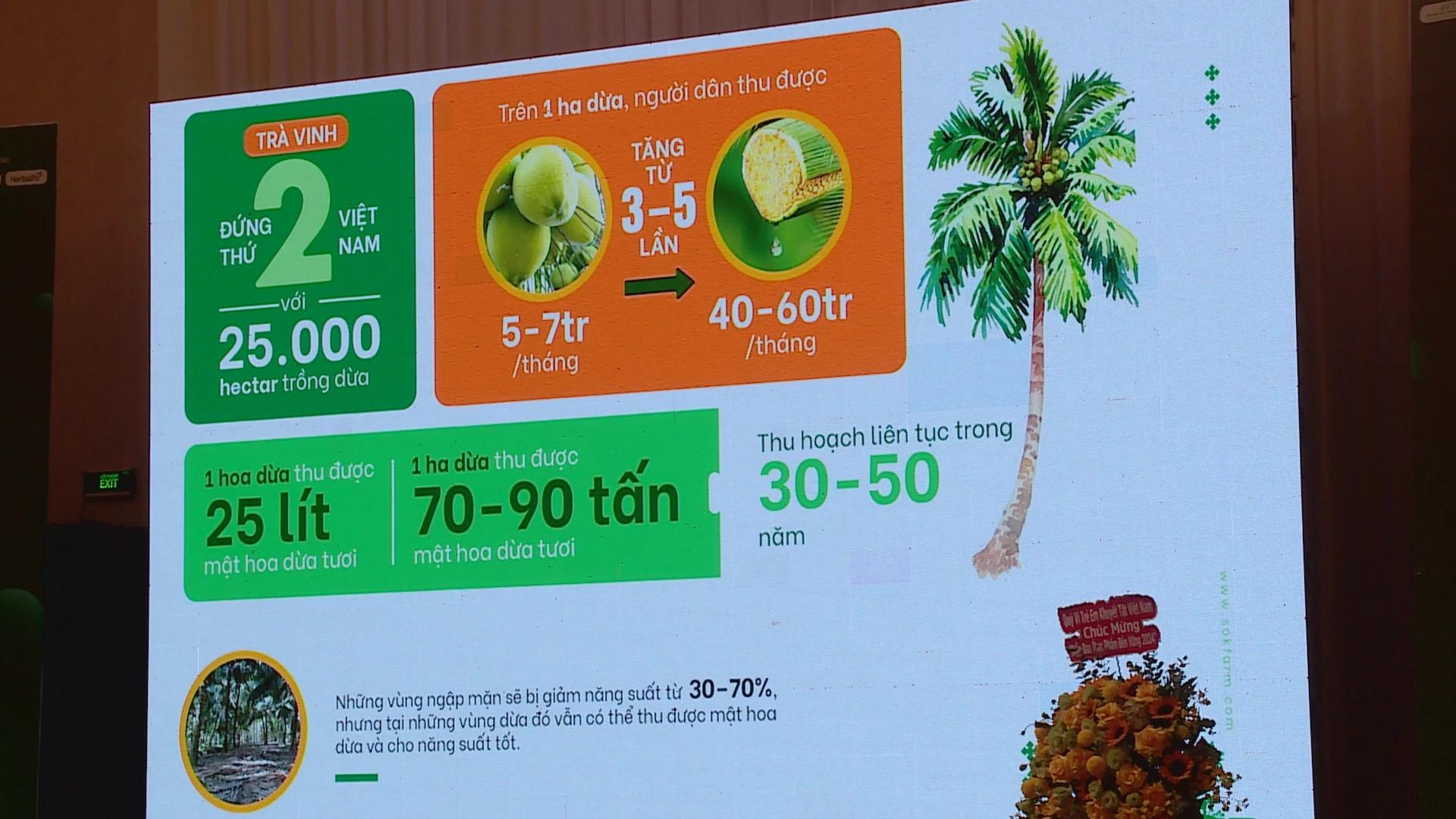 Chị Thạch Thị Chal Thi - Nhà Sáng lập Mật Hoa Dừa Sokfarm chia sẻ về khả năng thích ứng với biến đổi khí hậu của sản phẩm các sản phẩm từ mật hoa dừa hữu cơ: Chúng tôi cũng giảm thiểu lượng khí thải carbon bằng cách tối ưu hóa hoạt động vận chuyển. Cụ thể, chúng tôi luôn đảm bảo xe vận chuyển không bao giờ chạy rỗng, mà sẽ nhận hàng về ngay sau khi giao hàng xong. Ngành mật hoa dừa là một ngành có khả năng thích ứng tốt với biến đổi khí hậu, đặc biệt là tình trạng xâm nhập mặn. Điều này có nghĩa là ngay cả khi đất bị mặn, chúng ta vẫn có thể thu hoạch được mật hoa từ cây dừa. Mật hoa dừa là một loại đường tự nhiên, mang đến vị ngọt thanh mát. Sản phẩm này không chỉ cung cấp nguồn thu nhập ổn định cho người nông dân ở Trà Vinh và các tỉnh đồng bằng sông Cửu Long mà còn là một lựa chọn thực phẩm lành mạnh. Chúng tôi mong muốn mở rộng thị trường tiêu thụ sản phẩm này để nhiều người dân Việt Nam hơn có cơ hội được thưởng thức.