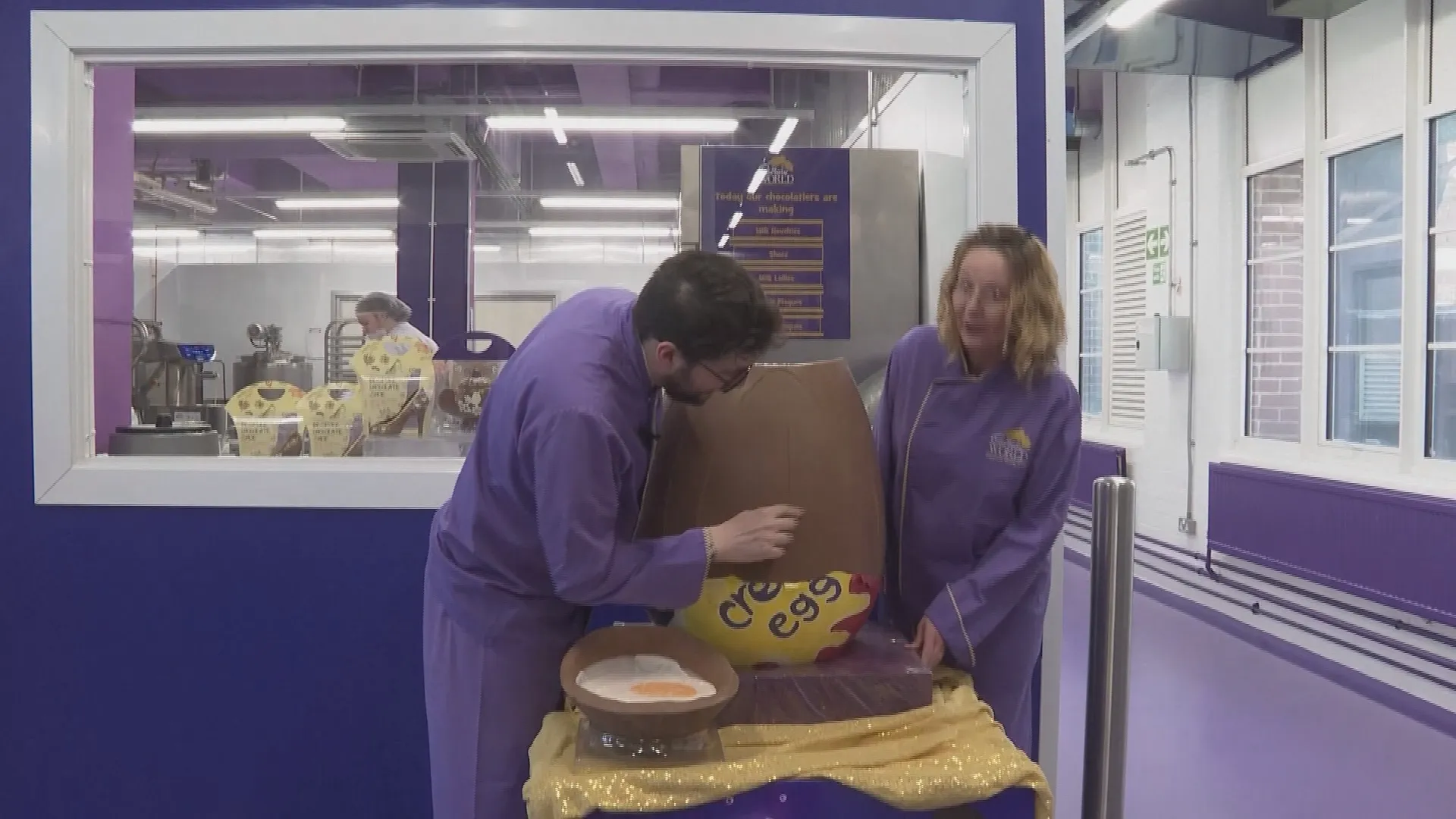 Terry Collins, thợ làm socola: "Chúng tôi phải làm 2 nửa quả trứng, sau đó ghép chúng lại. Chúng tôi còn cho vào kẹo fondant đặc trưng. Để mọi người thấy rõ nhân bên trong, chúng tôi còn cắt phần trên cùng của quả trứng."