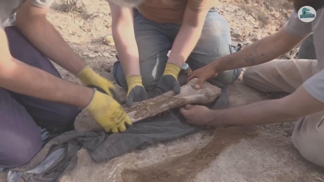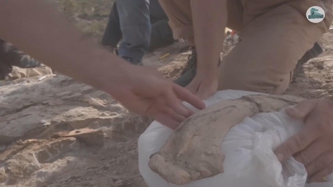 Họ đã khai quật được xương bả vai của một con khủng long mỏ vịt, và một xương đùi của khủng long chân thằn lằn với tỷ lệ bất thường.