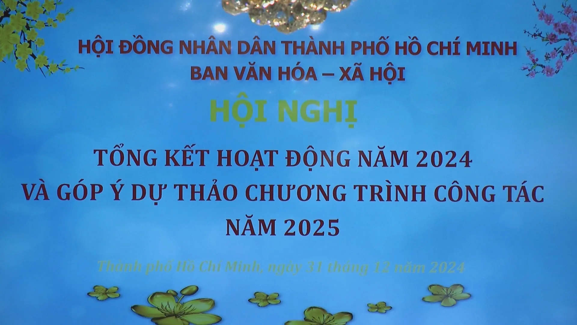 Ngày 31/12, Ban Văn hóa - Xã hội (VHXH) - Hội đồng Nhân dân (HĐND) TP.HCM đã tổ chức buổi tổng kết hoạt động năm 2024 và đề ra phương hướng, nhiệm vụ cho năm 2025. Buổi họp có sự tham dự của các đồng chí lãnh đạo thành phố: đồng chí Tăng Hữu Phong - Phó Ban Tuyên giáo Thành ủy, đồng chí Phạm Thành Kiên - Phó Chủ tịch Thường trực HĐND TP, đồng chí Huỳnh Thanh Nhân - Phó Chủ tịch HĐND Thành phố.