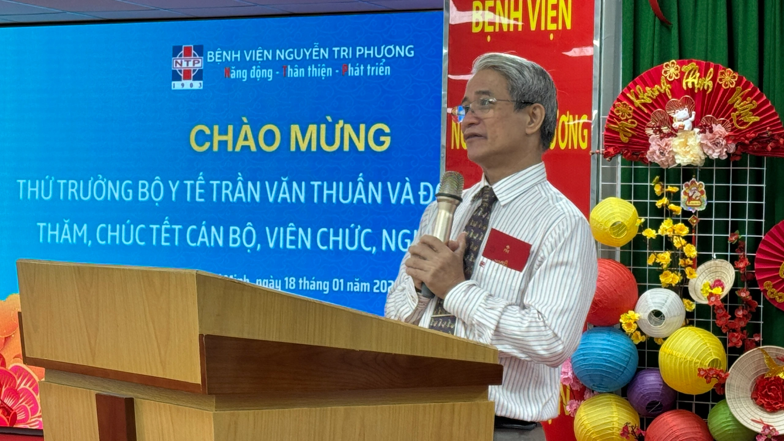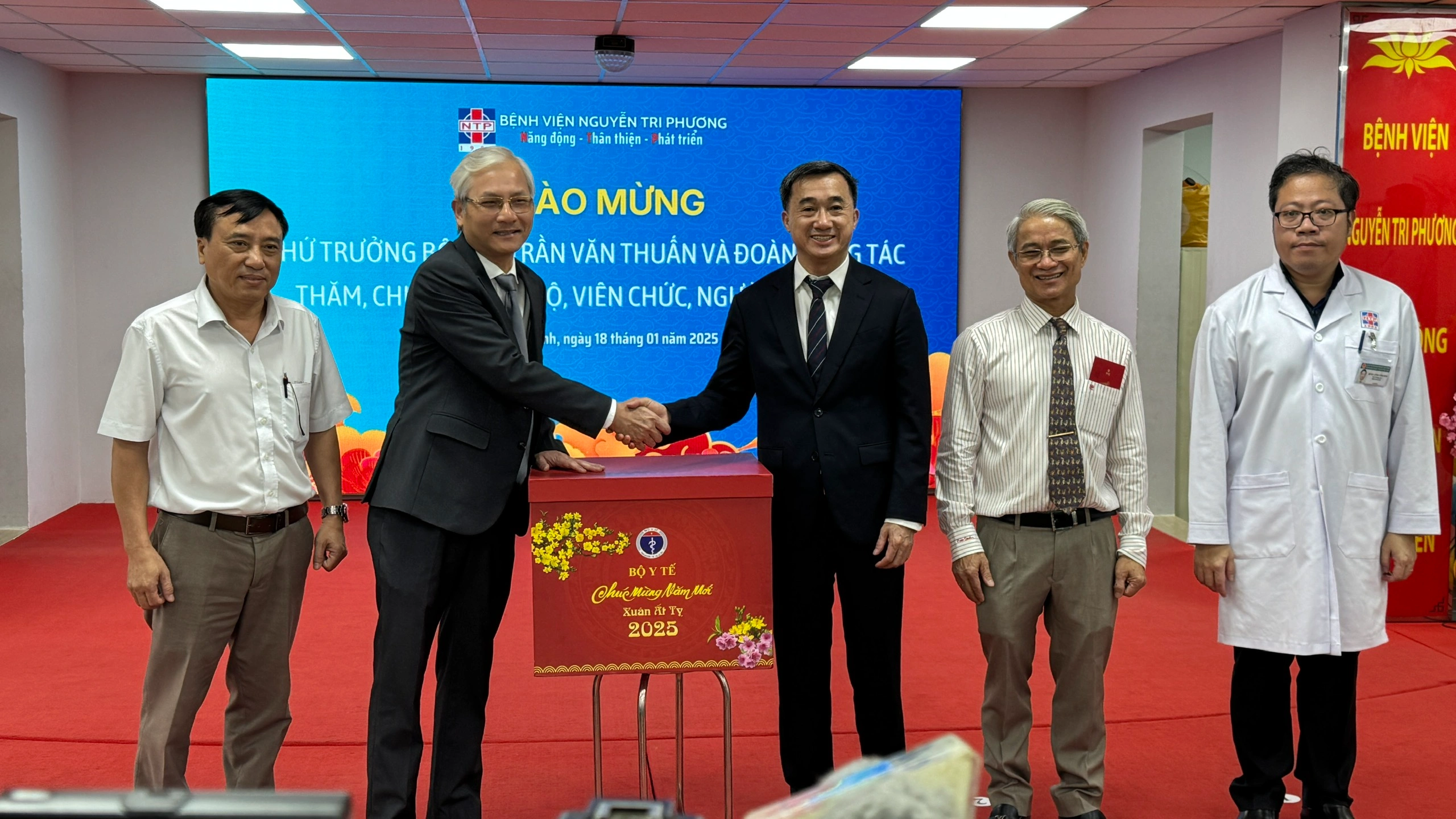 Trước đó, GS.TS. Trần Văn Thuấn - Thứ Trưởng bộ Y tế đã đến thăm và tặng quà tết, cùng với những lời chúc tốt đẹp trong năm mới đến tập thể lãnh đạo, y bác sĩ và người lao động,GS.TS. Trần Văn Thuấn - Thứ Trưởng bộ Y tế bày tỏ sự tin tưởng bệnh viện Nguyễn Tri Phương sẽ tiếp tục phát huy kết quả đạt được trong hoạt động, luôn lấy người bệnh làm trung tâm, ứng dụng khoa học công nghệ, nâng cao chuyên môn quản lý điều hành và đẩy mạnh hợp tác quốc tế.