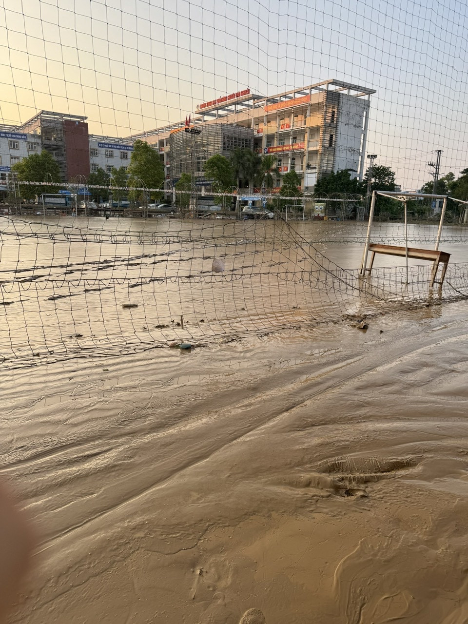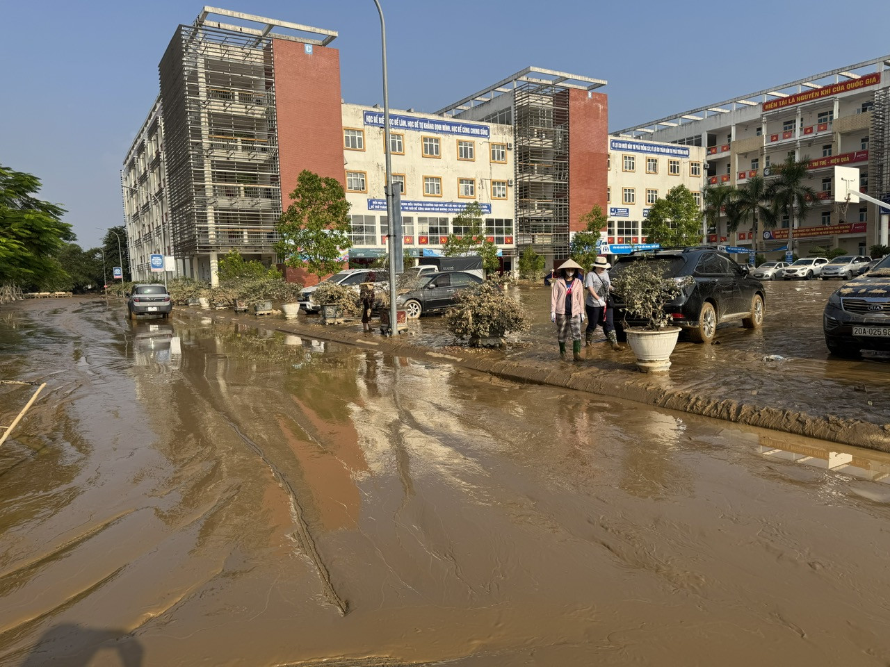 Sân trường THPT Chuyên Thái Nguyên ngập bùn sau lũ