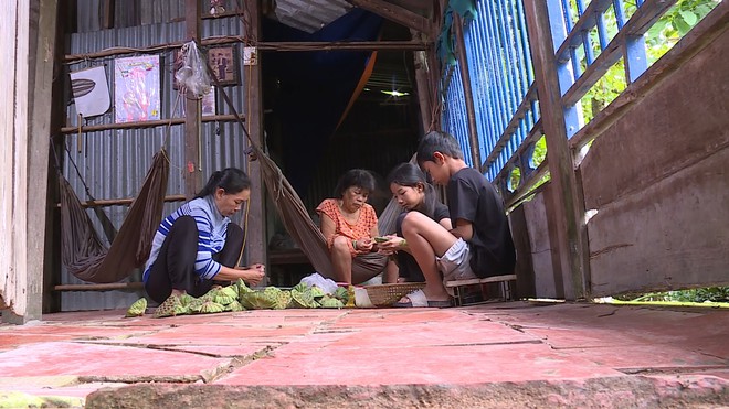 Căn nhà nơi gia đình sinh sống đã mục nát, xuống cấp nghiêm trọng. Dù vậy, hai chị em Thúy Đào rất hiểu chuyện. Em thường đi hái rau về luộc, còn em trai đi câu cá để cải thiện bữa ăn. Hình ảnh cậu bé tám tuổi vóc dáng nhỏ bé nhưng đã biết giúp mẹ, giúp chị việc nhà khiến nhiều người không khỏi xót xa.