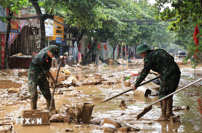 Đồng thời, chủ động bố trí lực lượng, phương tiện, vật tư, lương thực, thực phẩm và các nhu yếu phẩm cần thiết trước tại khu vực trọng điểm, xung yếu dự báo có nguy cơ bị chia cắt do sạt lở, ngập lụt để sẵn sàng cứu hộ, cứu nạn, hỗ trợ Nhân dân khắc phục hậu quả theo phương châm "bốn tại chỗ."