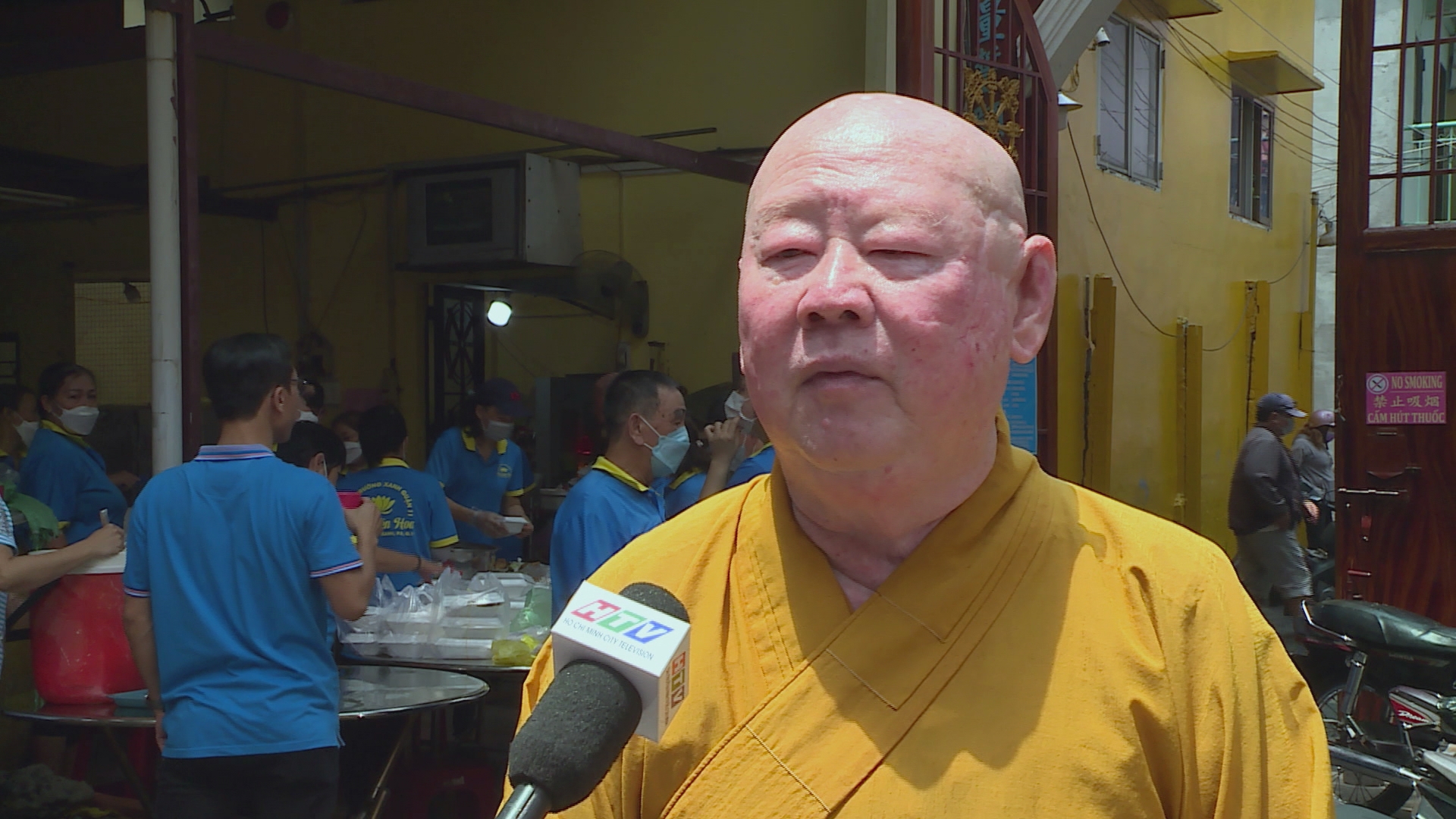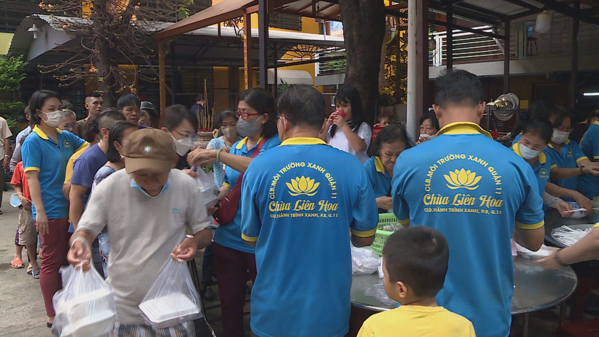 Buổi phát cơm từ thiện tại chùa Liên Hoa