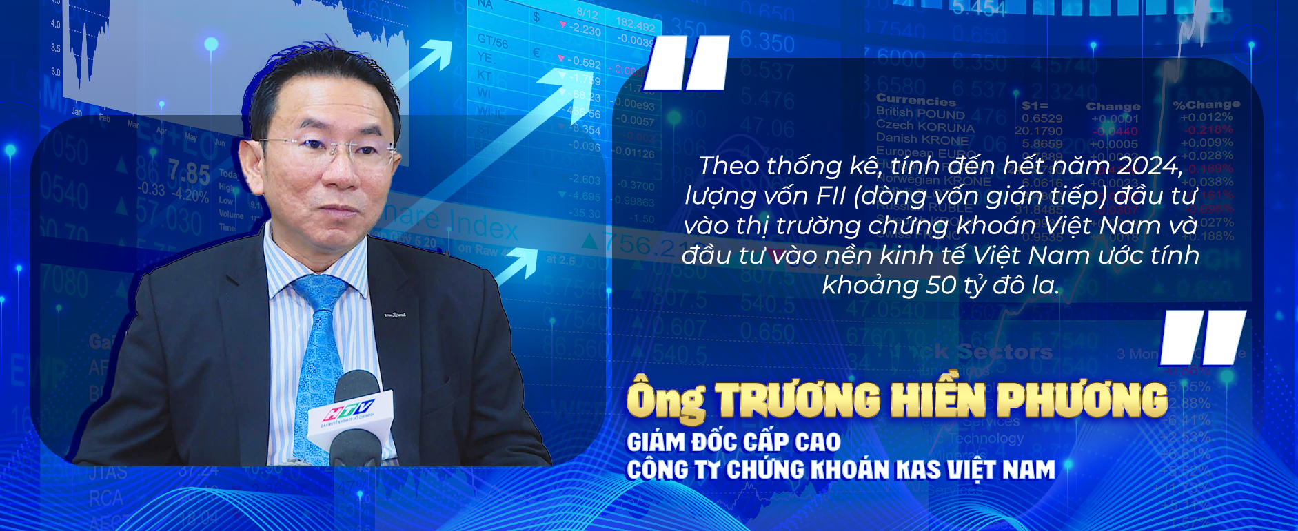 Sức hút này được minh chứng bằng những con số ấn tượng. Ông Trương Hiền Phương, Giám đốc cấp cao Công ty Chứng khoán KAS Việt Nam, chia sẻ: "Theo thống kê, tính đến hết năm 2024, lượng vốn FII (dòng vốn gián tiếp) đầu tư vào thị trường chứng khoán Việt Nam và đầu tư vào nền kinh tế Việt Nam ước tính khoảng 50 tỷ đô la."