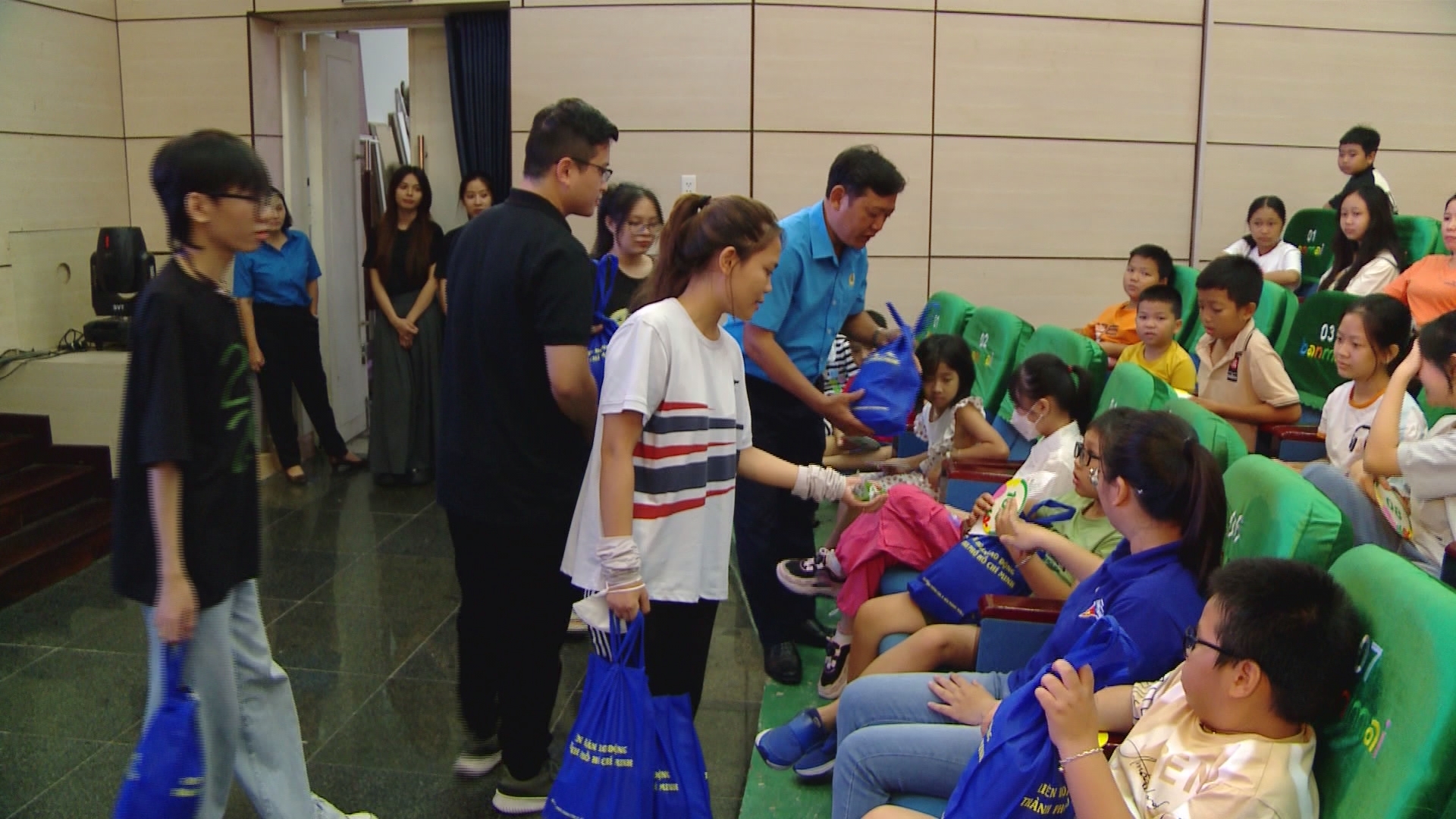 Dịp này, Trung tâm Công tác xã hội Công đoàn cùng các đơn vị tài trợ đã trao tặng cho các em thiếu nhi nhiều phần quà ý nghĩa gồm bánh kẹo, sữa hộp và nón bảo hiểm.