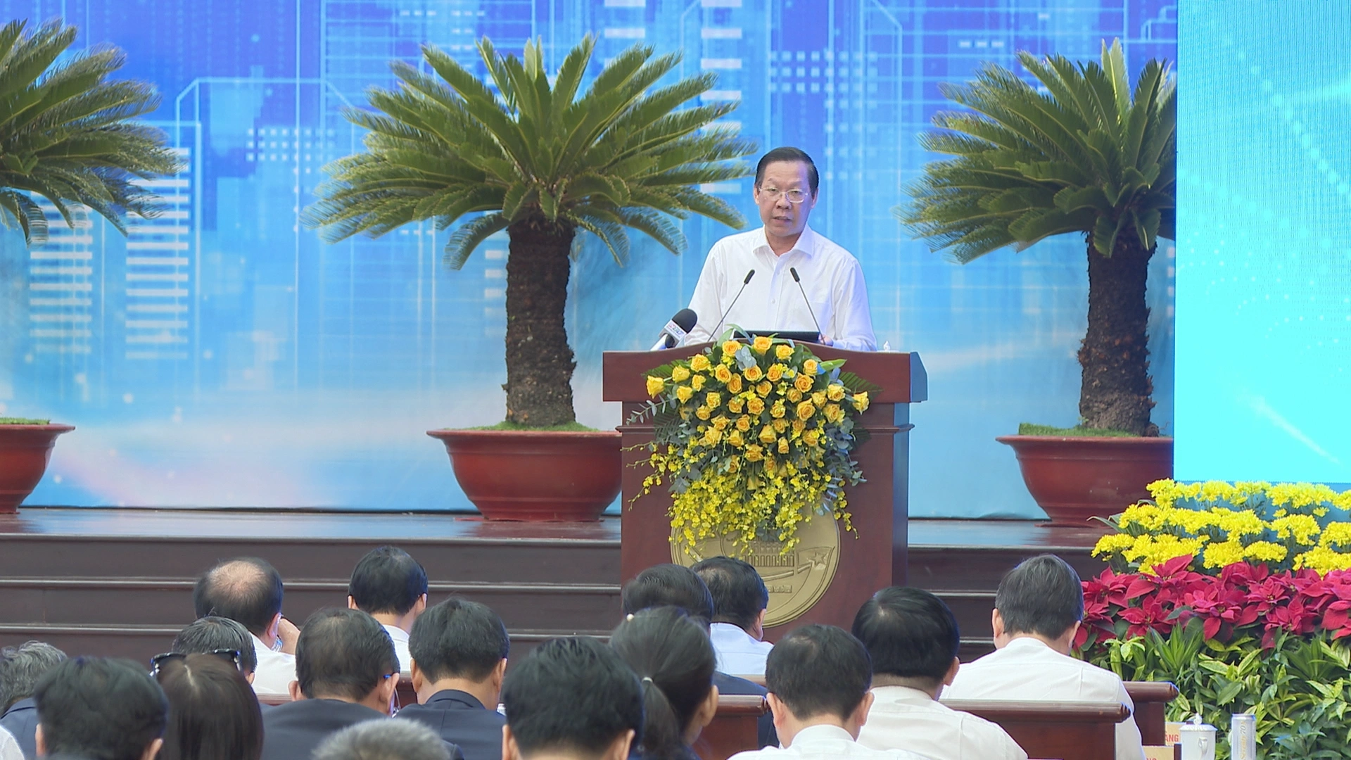 Phát biểu khai mạc hội nghị, Chủ tịch UBND TP.HCM Phan Văn Mãi khẳng định: Hội nghị công bố quy hoạch TP.HCM thời kỳ 2021-2030, tầm nhìn đến năm 2050 đánh dấu bước quan trọng trong việc thực hiện nhiệm vụ, chiến lược, giải pháp đột phá; tạo ra động lực mới thúc đẩy phát triển và khẳng định vai trò đầu tàu của Thành phố, tạo nền tảng để Thành phố cùng cả nước tiến vào kỷ nguyên mới, kỷ nguyên vươn mình của dân tộc. Để triển khai thực hiện tốt, hiệu quả quy hoạch, Thành phố cần thực hiện 7 giải pháp chính.