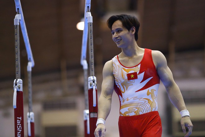 Đinh Phương Thành chiến thắng ở nội dung xà kép nam giành HCV và đạt HCĐ ở xà đơn nam (Ảnh: Ngọc Huy)