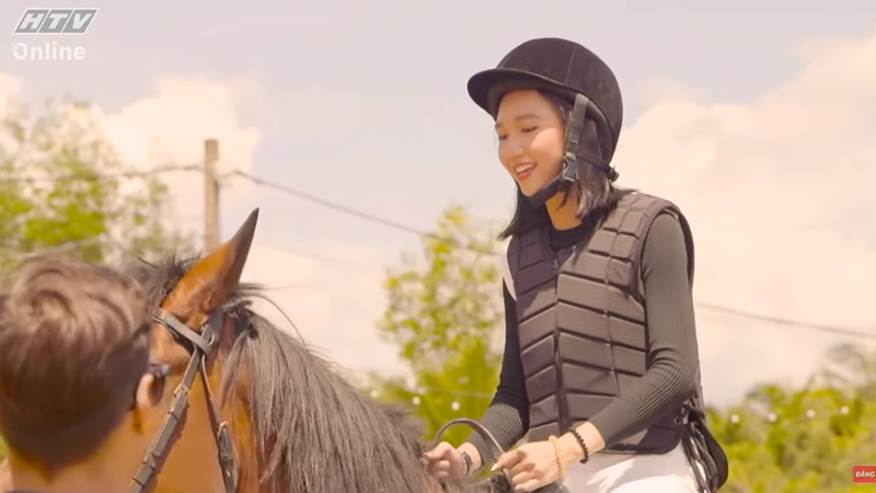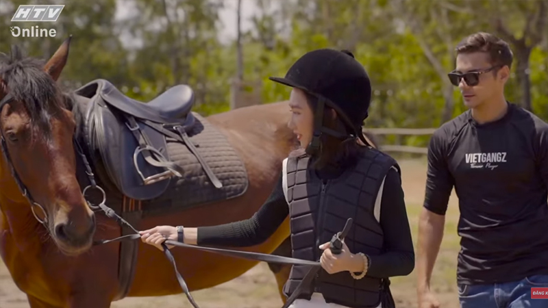 MC Như Bình làm quen với bạn ngựa trước khi cưỡi