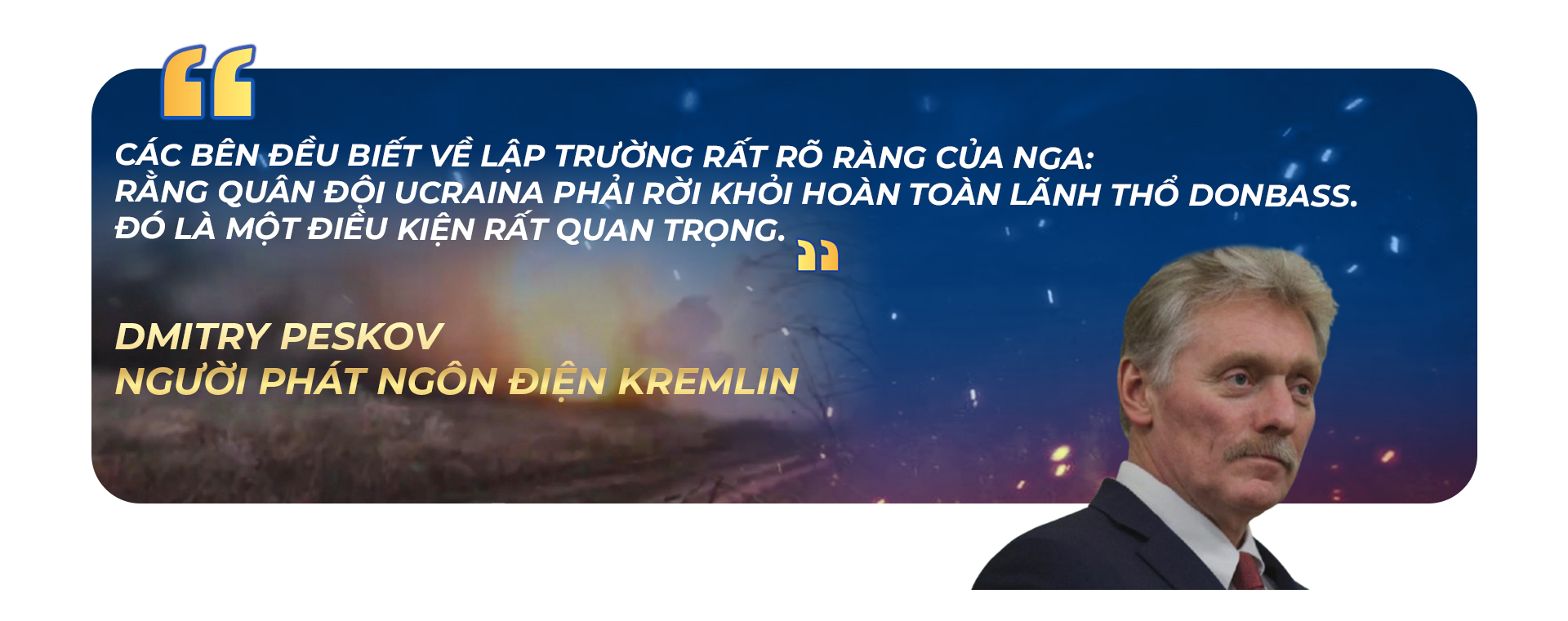 Yêu cầu của Tổng thống Nga Putin là buộc Ucraina phải từ bỏ 20% phần lãnh thổ mà nước này vẫn còn kiểm soát tại tỉnh Donetsk thuộc vùng Donbass – tương đương khoảng 5.000 km vuông.