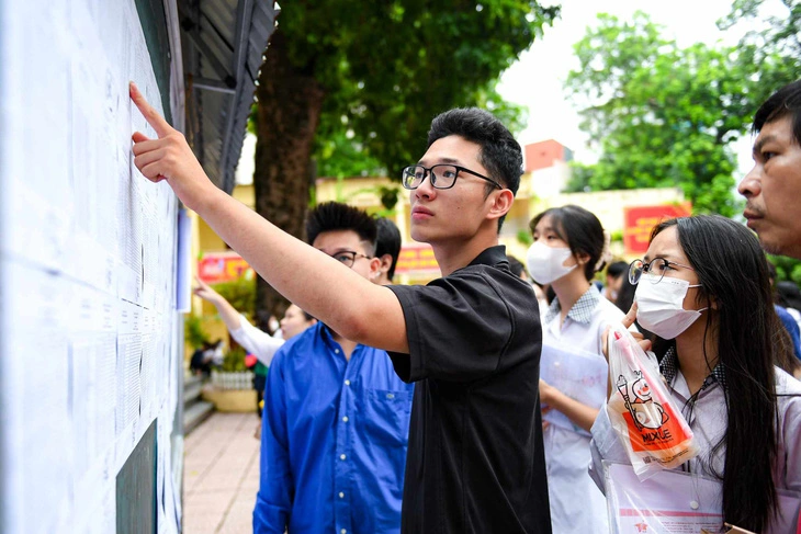 Thí sinh tham dự kỳ thi tốt nghiệp THPT năm 2023 xem danh sách phòng thi được niêm yết tại một hội đồng thi ở Hà Nội