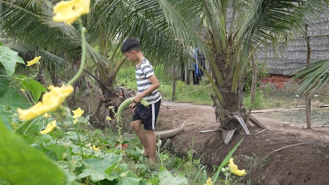 Em Đạt Bảo sống cùng ông bà ngoại trong căn nhà vách lá