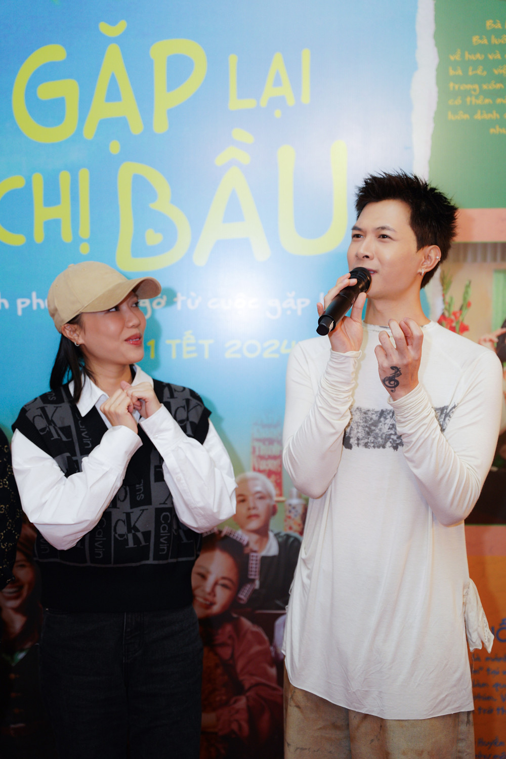 Trong Gặp lại chị bầu, Anh Tú và Diệu Nhi đảm nhiệm vai nam và nữ chính với mối quan hệ rất đặc biệt. Lần đầu đóng chung phim điện ảnh nhưng cả hai tương tác rất tốt, đặc biệt trong những cảnh đòi hỏi nhiều cảm xúc.