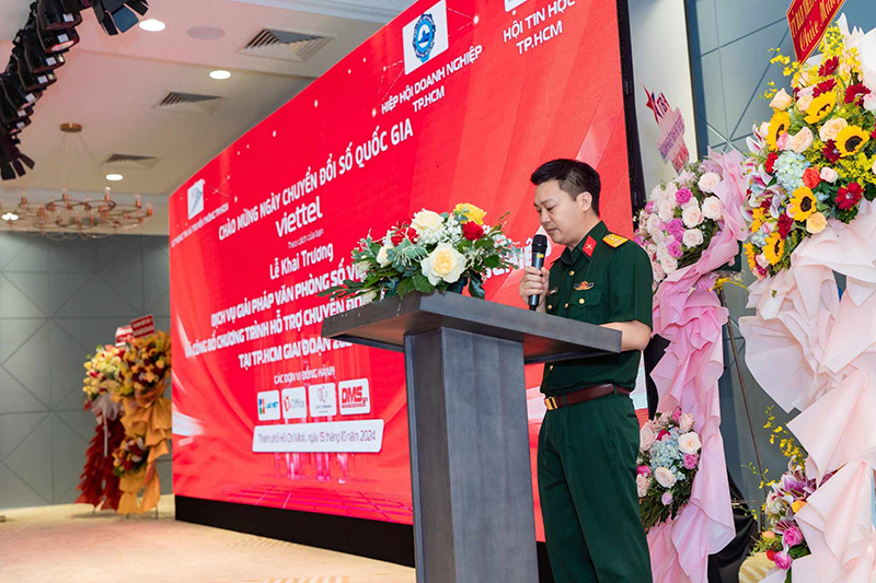 Cũng trong buổi lễ khai trương, Viettel Tp. Hồ Chí Minh công bố chương trình “Hỗ trợ chuyển đổi số cho Doanh nghiệp tại TP.HCM giai đoạn 2024 – 2025” với thời gian hỗ trợ Doanh nghiệp dùng miễn phí các giải pháp chuyển đổi số trong Hệ sinh thái số của Viettel lên đến 01 năm.
