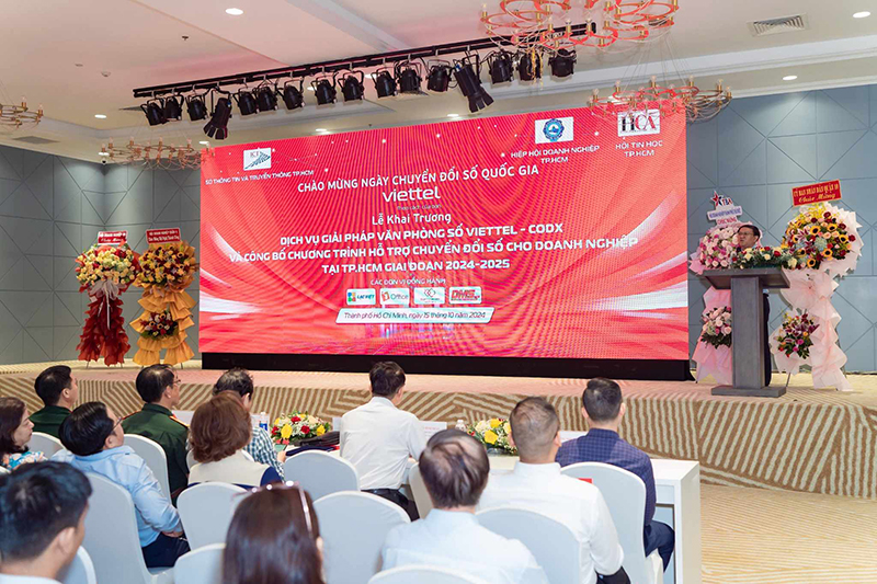 Ngày 15/10/2024, trong tháng kỷ niệm 20 năm ngày Doanh nhân Việt Nam, trước sự chứng kiến của đại diện các Sở, Ban ngành: Sở Thông tin truyền thông, Sở Kế hoạch đầu tư, Sở Khoa học Công nghệ, … Viettel Tp. Hồ Chí Minh đã tổ chức lễ khai trương giải pháp Văn phòng số Viettel – CODX và công bố chương trình “Hỗ trợ chuyển đổi số cho Doanh nghiệp tại TP.HCM giai đoạn 2024 – 2025”.