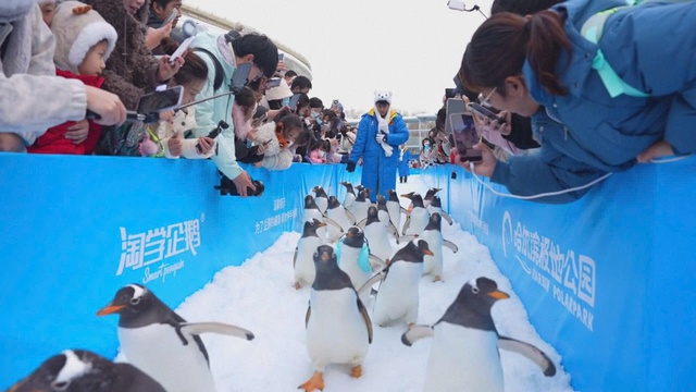 Đàn chim cánh cụt diễu hành tại Cáp Nhĩ Tân, Trung Quốc