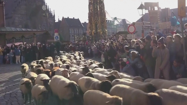 Trong ngày hôm qua, khách bộ hành tại thành phố Nuremberg của Đức đã phải nhường đường cho... hàng trăm con cừu, khi chúng được lùa qua trung tâm để đến nơi trú Đông.
