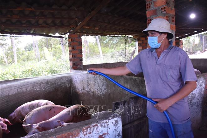 Vệ sinh chuồng trại của hộ chăn nuôi lợn tại xã Nghĩa Thành, TP Hồ Chí Minh.