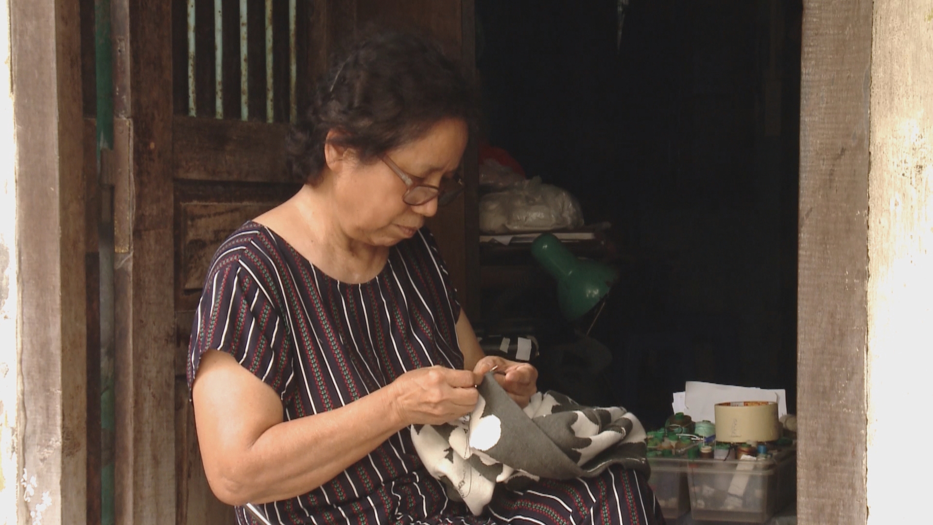 Bà Nguyễn Thị Hồng cùng nghề vá mạng, sang sợi quần áo