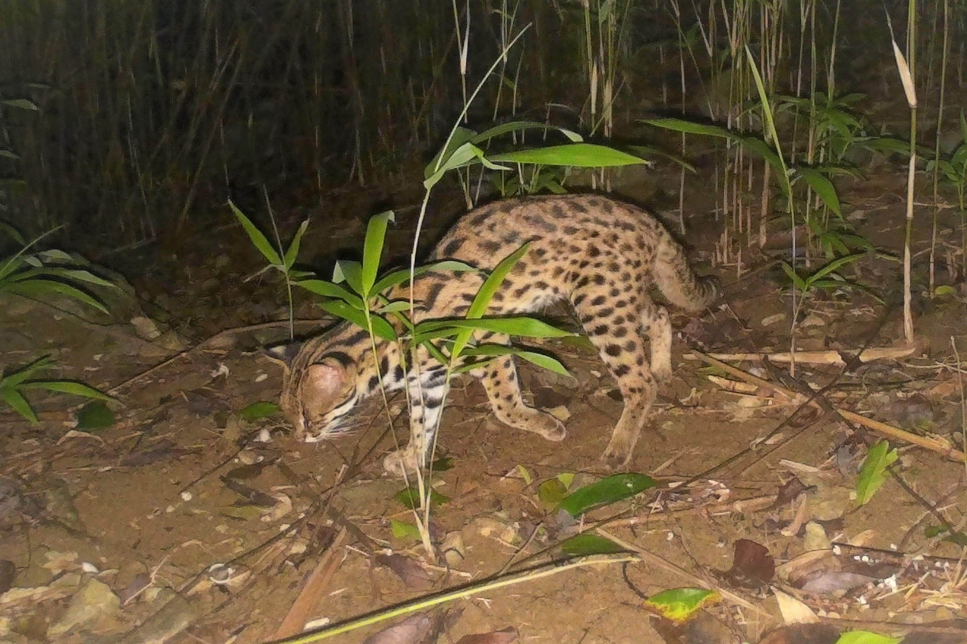 Một cá thể mèo rừng được bẫy ảnh bắt trọn khoảnh khắc đang đi ăn đêm trong khu rừng.