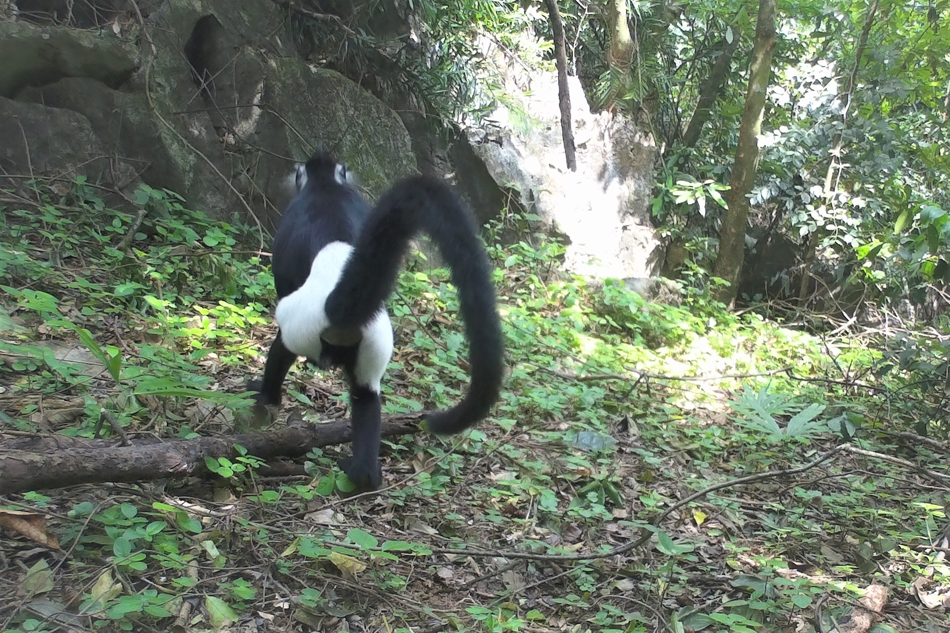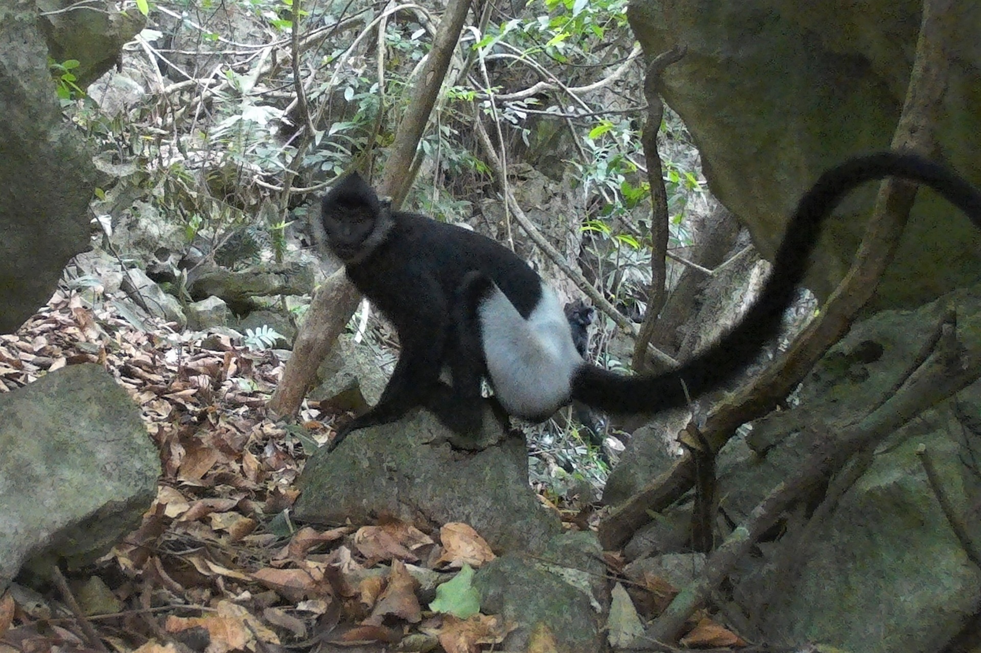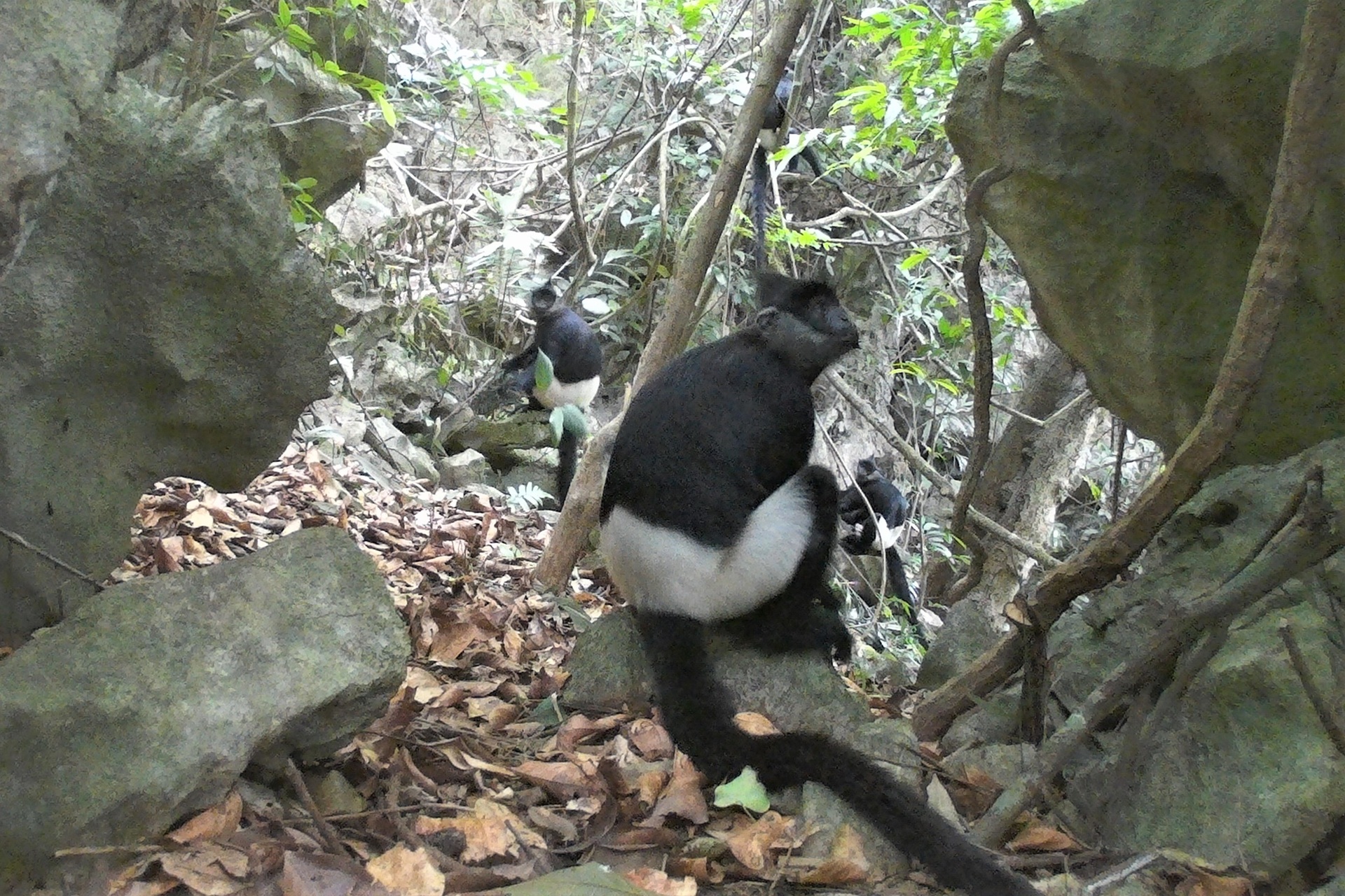 Điều khiến các nhà nghiên cứu vui mừng nhất đó là việc nhìn thấy loài voọc mông trắng quý hiếm xuất hiện tại khu rừng. Các hoạt động của chúng được bẫy ảnh ghi nhận lặp đi lặp lại nhiều lần với số lượng lớn các cá thể.