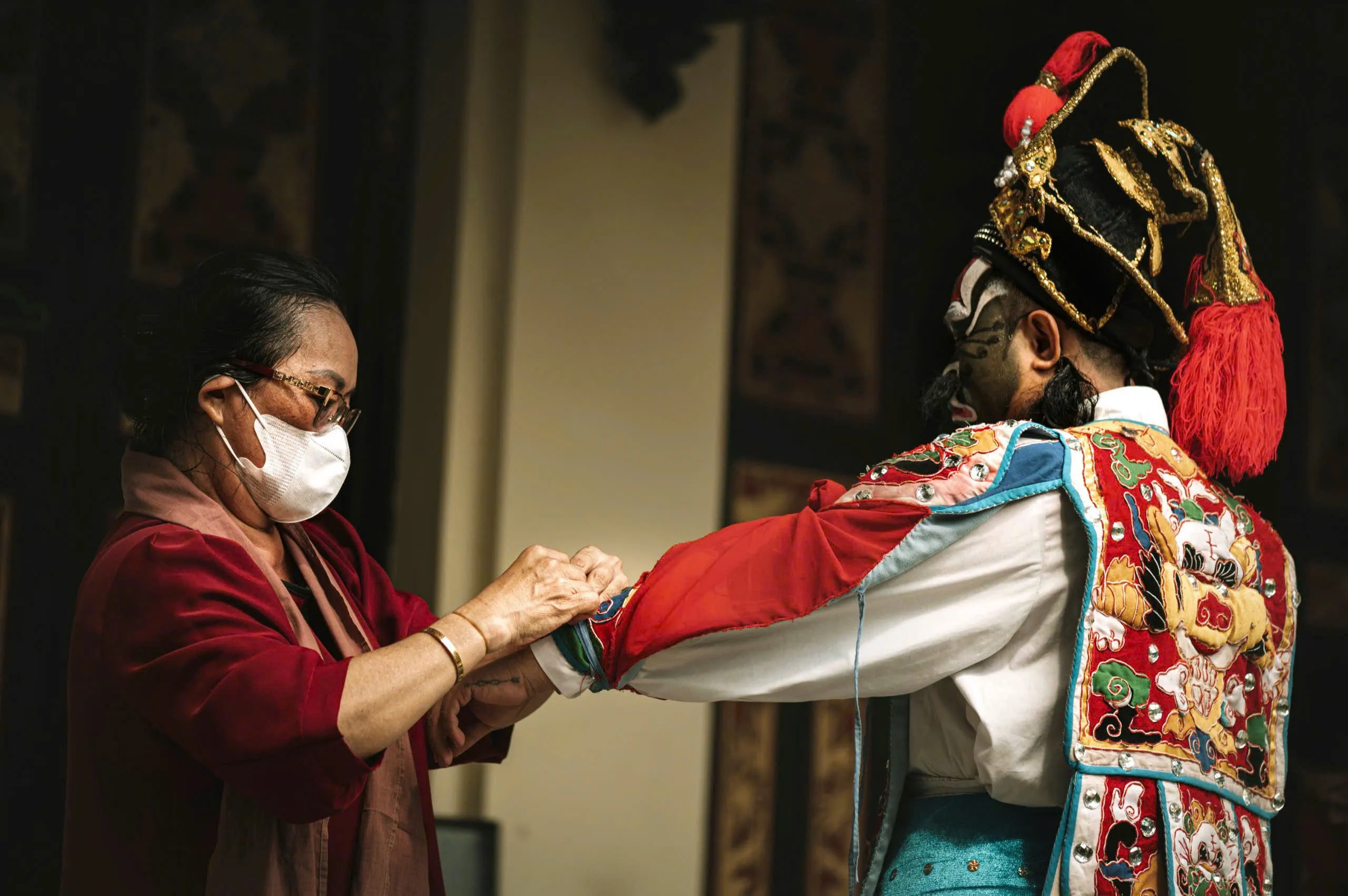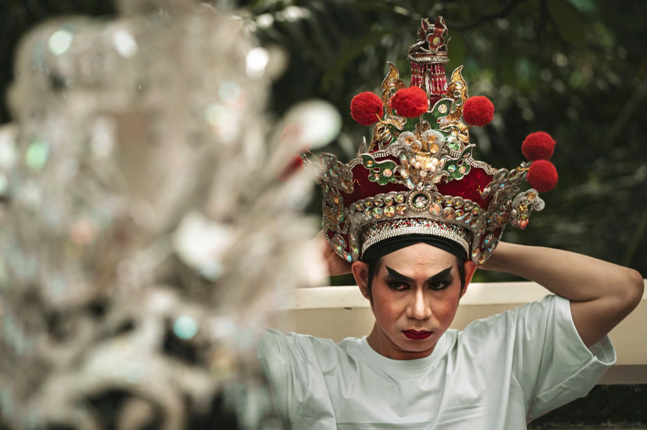 Các diễn viên đang hoá trang cho màn trình diễn của mình