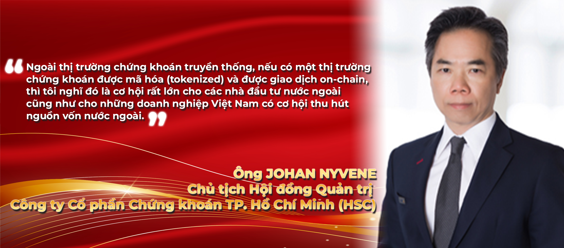 Đánh giá về triển vọng này, ông Johan Nyvene - Chủ tịch Hội đồng Quản trị Công ty Cổ phần Chứng khoán TP. Hồ Chí Minh (HSC) nhận định: "Việc mã hóa (tokenize) các sản phẩm chứng khoán hiện hữu, nếu được triển khai trong khuôn khổ Trung tâm Tài chính quốc tế Việt Nam, sẽ mở ra "cánh cửa" rộng lớn với đa dạng lựa chọn cho các nhà đầu tư quốc tế".