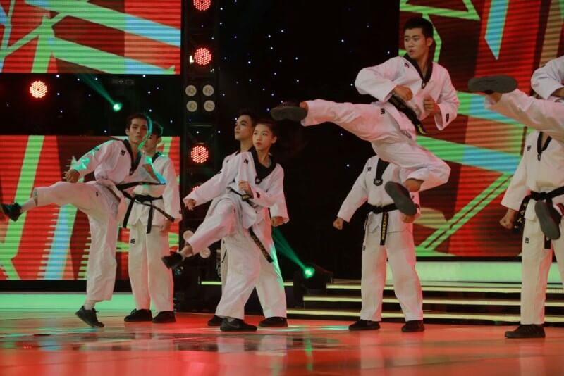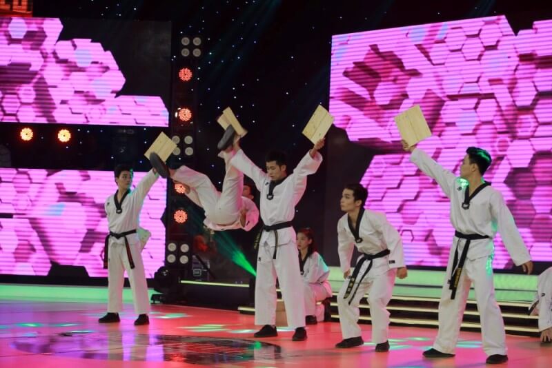 Sự linh hoạt trong sự di chuyển đội hình cùng những cú đá cao của bộ môn Taekwondo, nhóm đã làm cho cả khán phòng nhún nhảy theo không ngừng