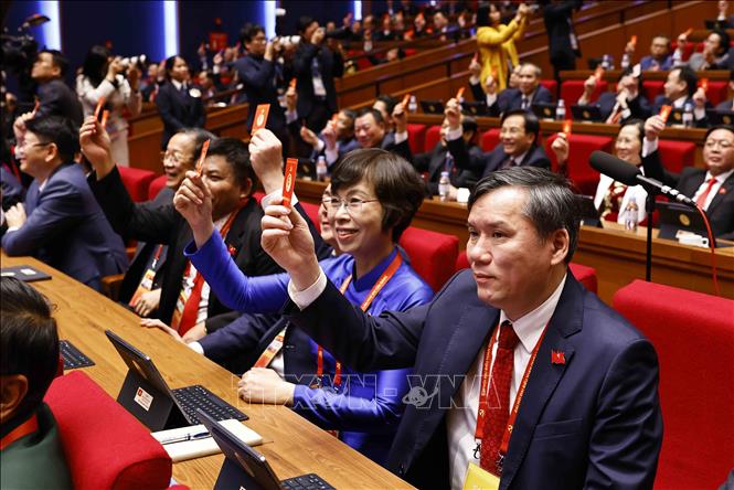 Các đại biểu biểu quyết thông qua Quy chế làm việc của Đại hội. Ảnh: TTXVN