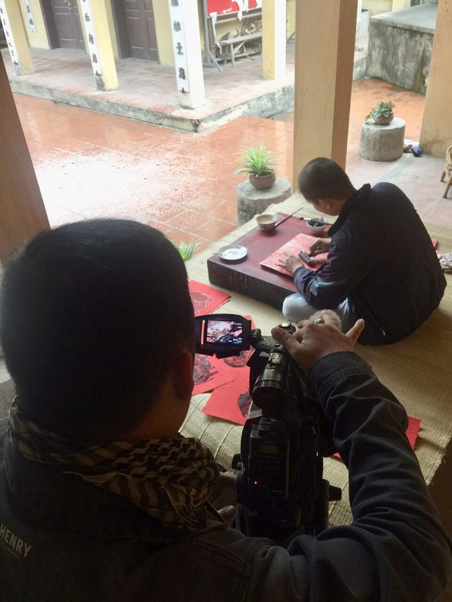Ê-kíp hãng phim TFS đang tác nghiệp tại làng tranh Kim Hoàng (Xứ Đoài - Hà Tây)