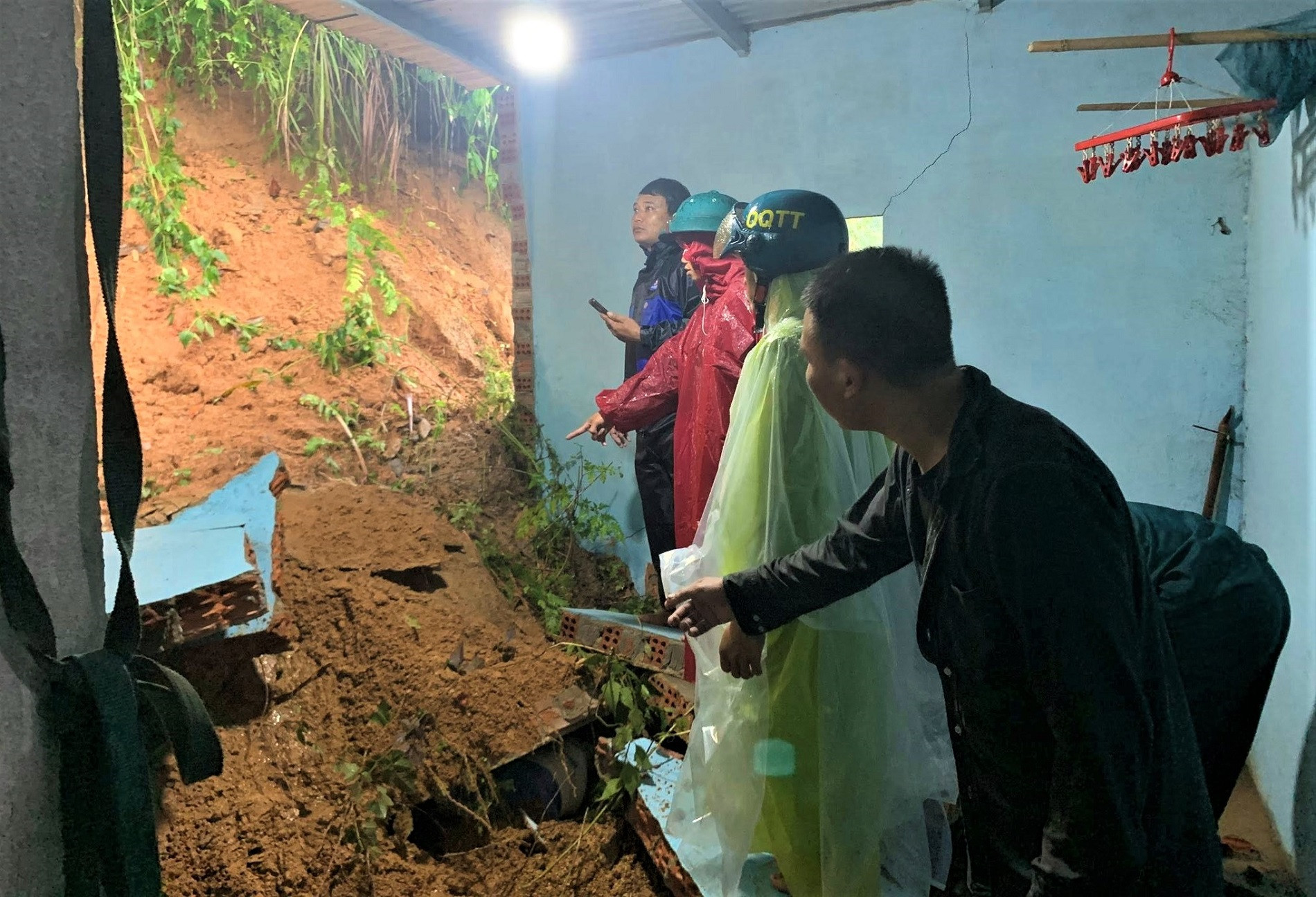 Tại xã Trà Đốc, khoảng 12h trưa nay, đất đá từ taluy phía sau bất ngờ đổ ập xuống nhà anh Hồ Văn Long (thôn 9), làm sập phòng ngủ rộng khoảng 12m² và hư hỏng nhiều tài sản. Rất may, các thành viên trong nhà kịp thoát ra ngoài, không có thương vong.