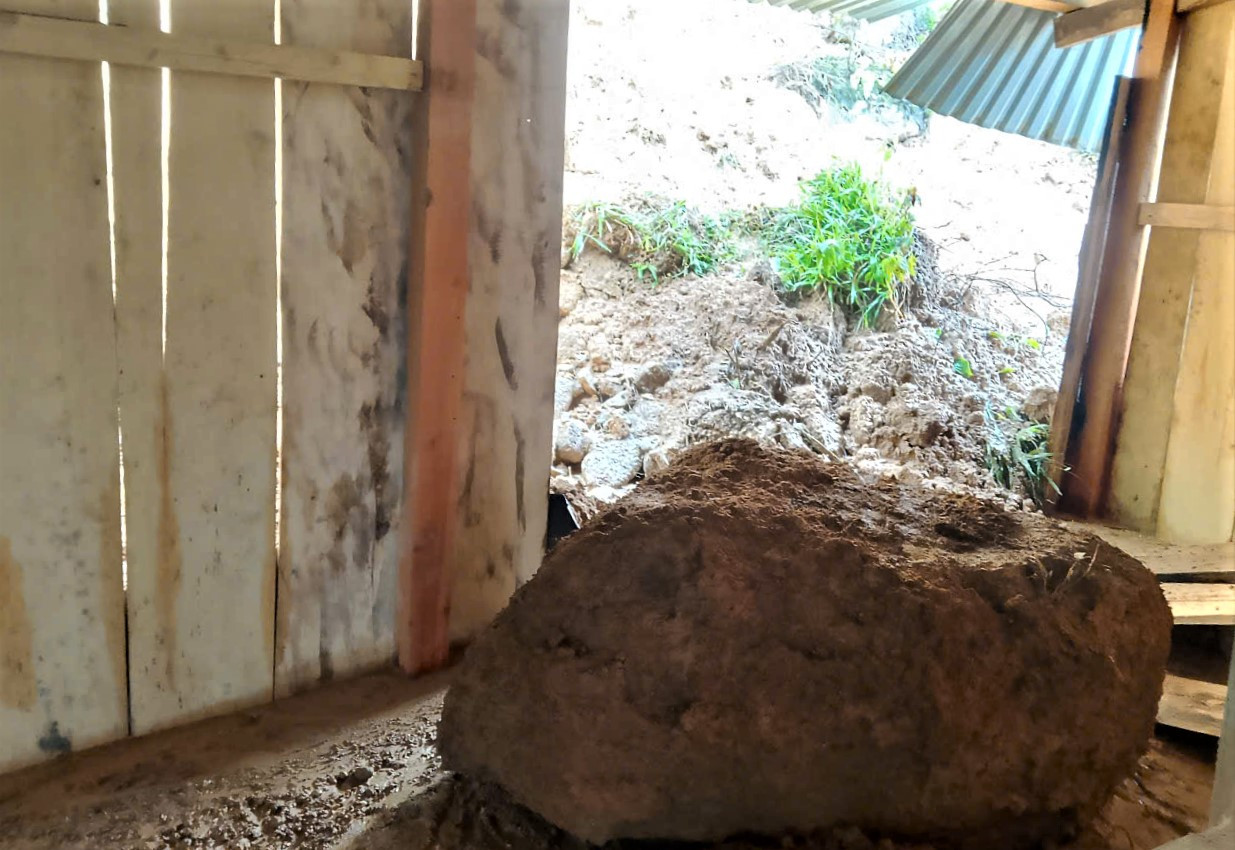 Đất đá tràn vào nhà ông Hồ Văn Lên ở xã Trà Leng gây thiệt hại nặng về tài sản