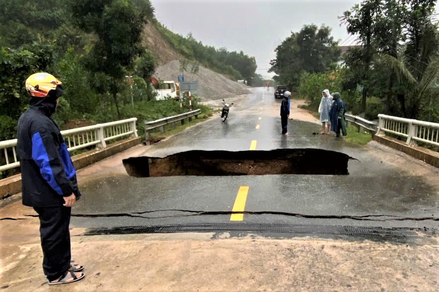 Khoảng 15h cùng ngày, nước lũ từ thượng nguồn đổ về đã gây sạt lở mố cầu Ca Da tại Km85+095. Vụ sạt lở làm hư hỏng gần như hoàn toàn mặt đường, tạo thành một hố sâu rất nguy hiểm.