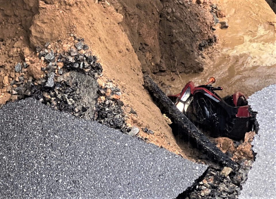Chiếc xe máy bị rớt xuống "hố tử thần"