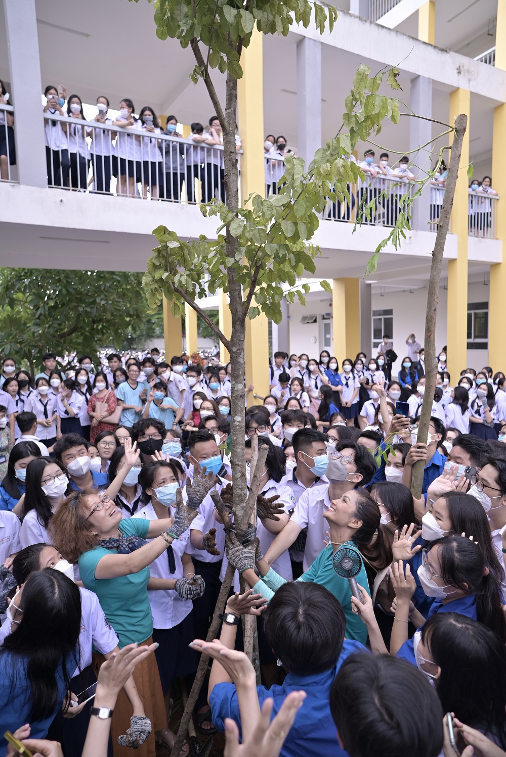 Nàng Hậu đã cùng các em học sinh 2 trường trồng 30 cây gỗ lớn, mỗi cây cao 5-6m, nhằm tạo bóng mát sân trường, lọc sạch không khí và góp phần phủ xanh thành phố. Gần 1.000 học sinh 2 trường cũng đã hăng hái tham gia Hội thi tìm hiểu cây xanh cùng H'Hen và Gaia.