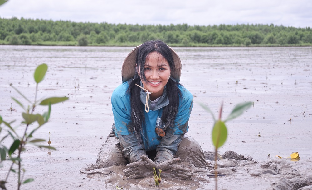 Hoa hậu H’Hen Niê lội bùn khoanh nuôi rừng Cà Mau