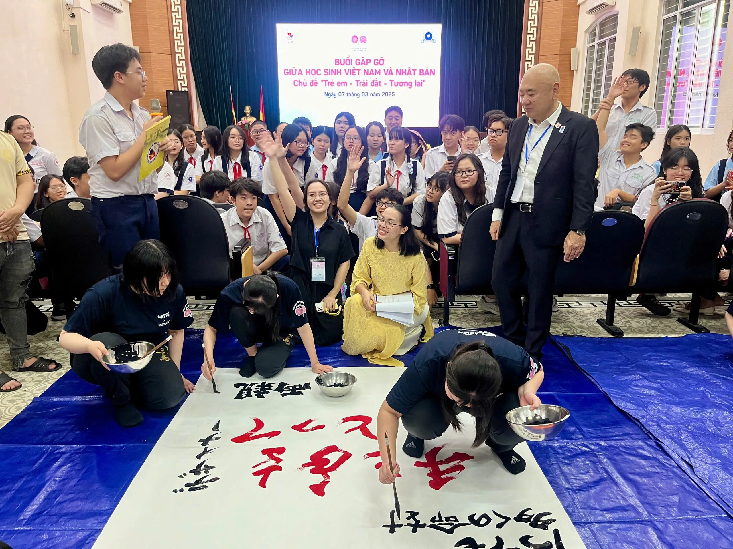 Lấy cảm hứng từ tình bạn và tinh thần hợp tác quốc tế, buổi giao lưu không chỉ mang đến những cuộc trò chuyện cởi mở giữa học sinh Việt Nam và Nhật Bản, mà còn tạo điều kiện để các em cùng nhau vẽ tranh, chia sẻ ước mơ và dự định tương lai. Qua đó, các em được khuyến khích suy nghĩ về những hành động chung có thể thực hiện để đóng góp cho sự phát triển bền vững của cộng đồng, cũng như củng cố mối quan hệ ngoại giao giữa hai quốc gia.