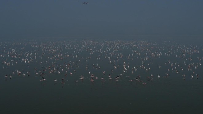 Hàng ngàn con hồng hạc bay về hồ nước mặn lớn nhất Ấn Độ trú đông