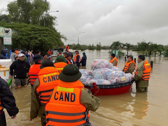 Công an Đà Nẵng phát lương thực cho người dân vùng ngập lụt
