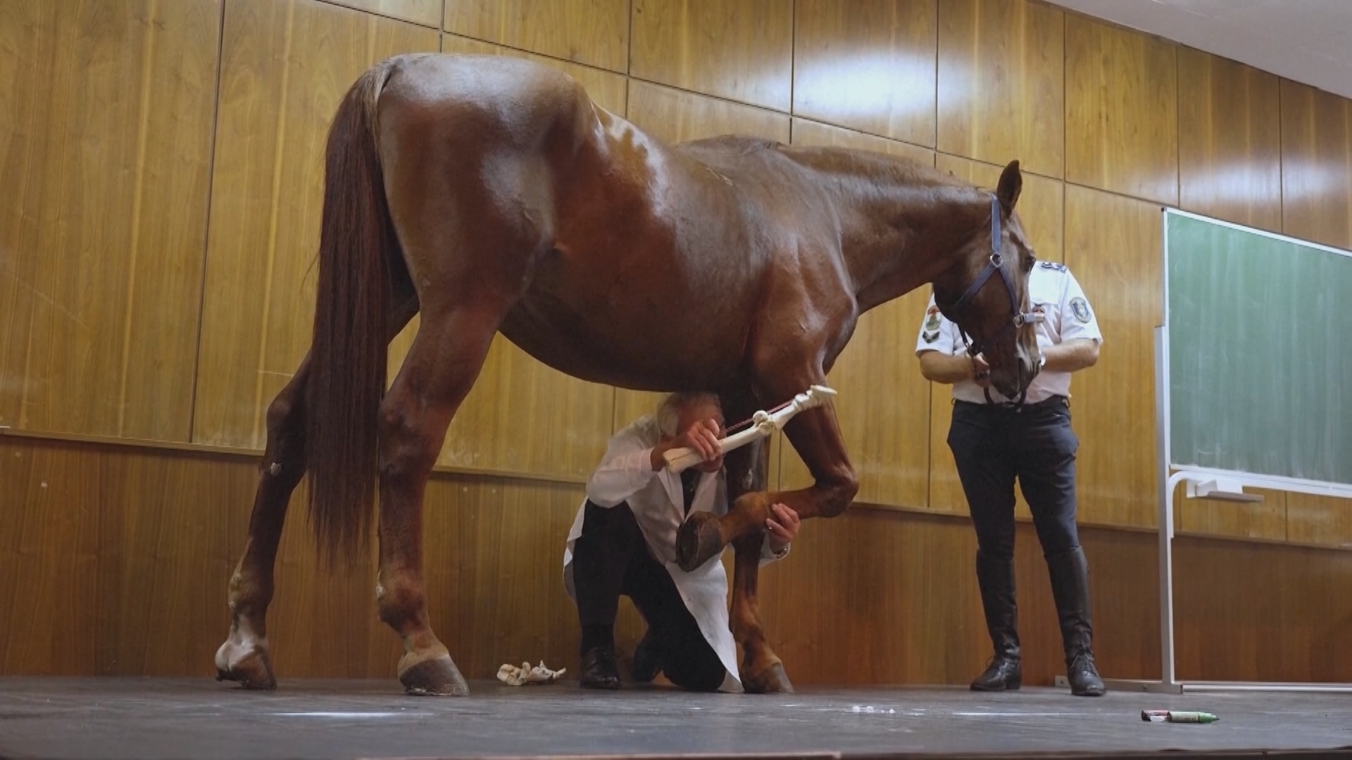 Những chú ngựa trưởng thành được đưa lên bục giảng đường để làm mẫu cho buổi học giải phẫu động vật.