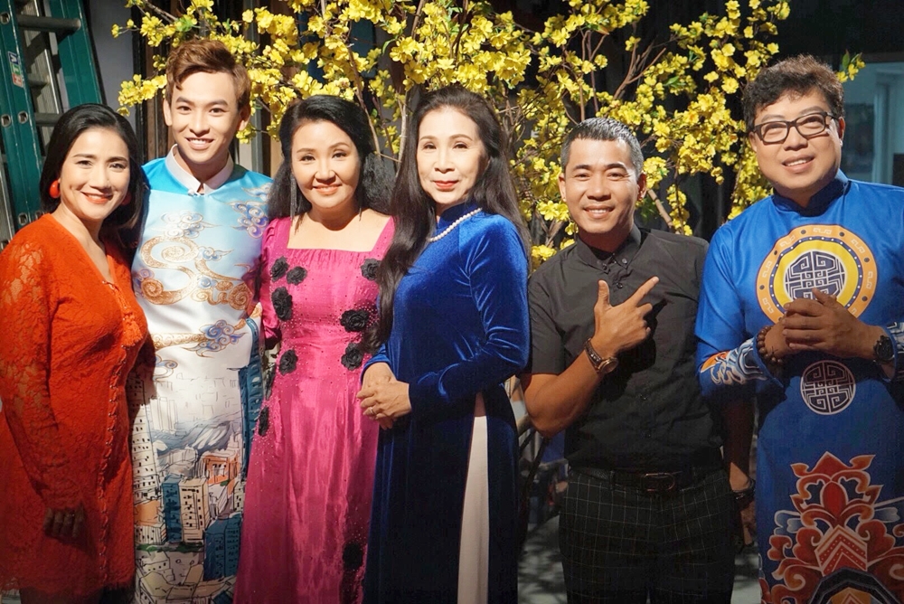 Huỳnh Quý cùng các nghệ sĩ gạo cội trong một chương trình talkshow của HTV