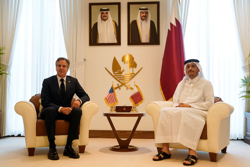 Ngoại trưởng Mỹ Antony Blinken gặp Thủ tướng kiêm Bộ trưởng Ngoại giao Qatar Mohammed bin Abdulrahman Al Thani tại Doha, Qatar, ngày 24/10/2024. Nguồn ảnh: Reuters