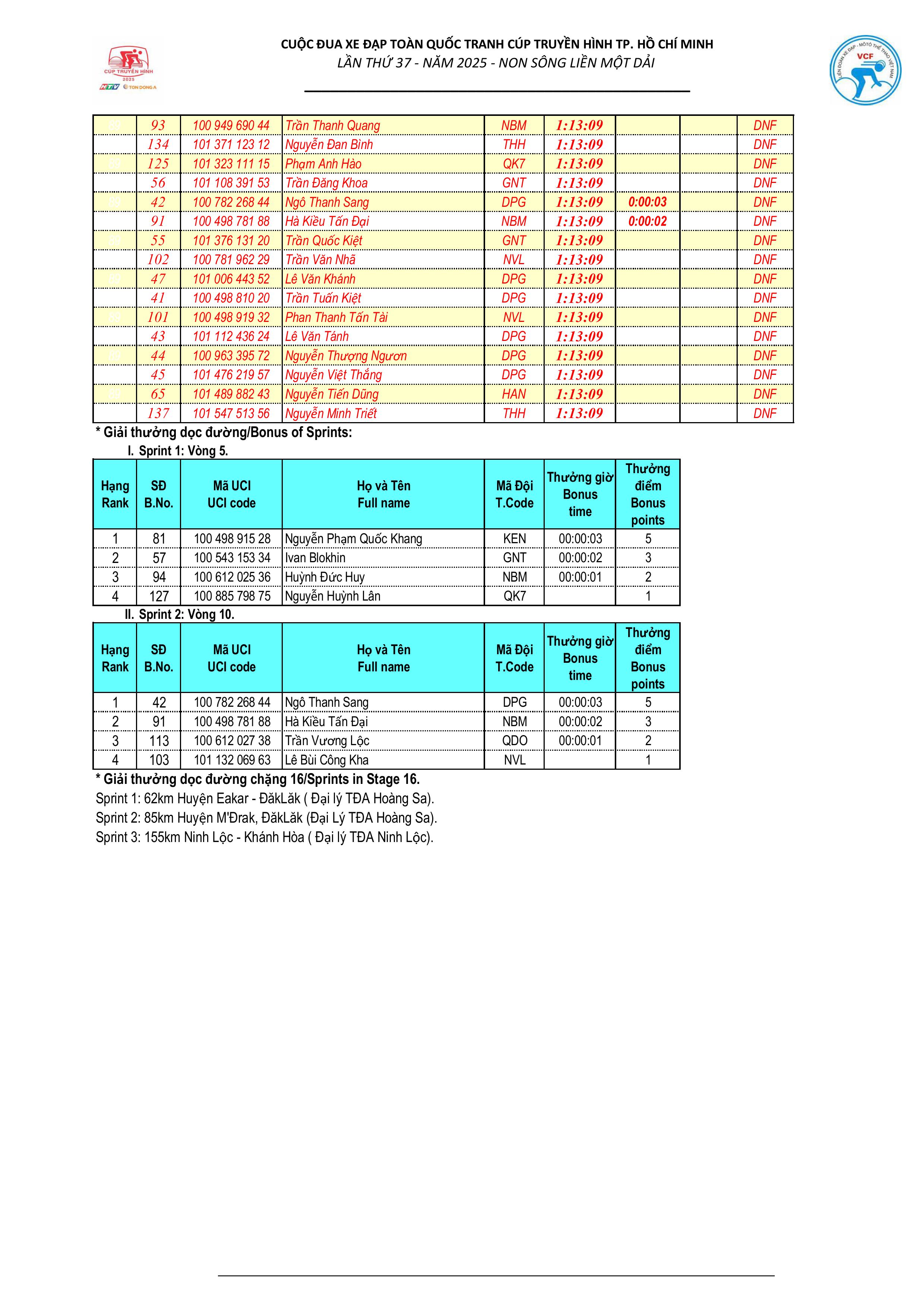 Kết quả chặng 15: Vòng đua TP Buôn Mê Thuột (Đắk Lắk)