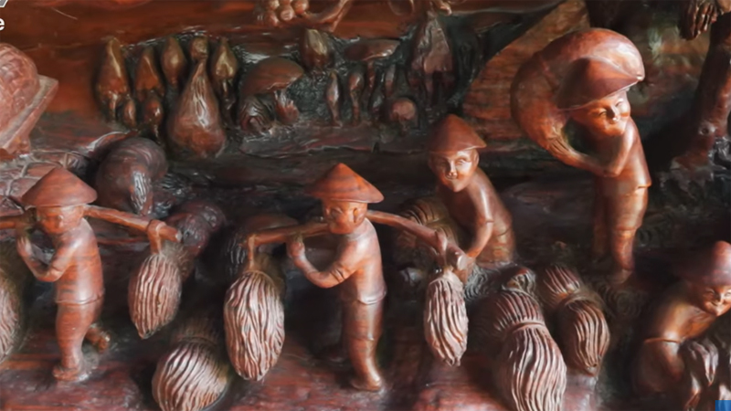 Một phần trong tổng thể bức tranh gỗ lũa dài gần 25 mét tại Cồn Én