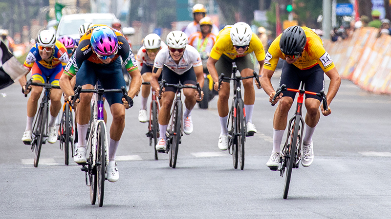 Ethan Batt và Johnny Hoogerland cạnh tranh khốc liệt tại đích đến ở TP Pleiku, tỉnh Gia Lai