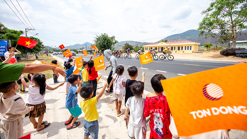 Các em nhỏ địa phương hân hoan chào đón đoàn đua